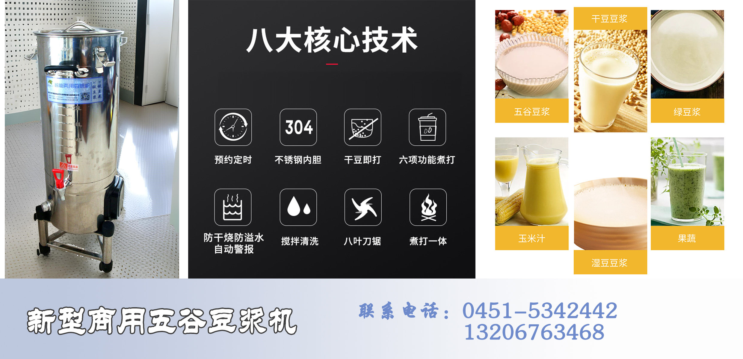 《哈爾濱市盛迪鑫金豆不銹鋼機(jī)械設(shè)備有限公司》主要經(jīng)營(yíng):豆制品加工生產(chǎn)設(shè)備、酒店廚房設(shè)備和不銹鋼機(jī)械設(shè)備制造等,公司根據(jù)客戶需求,結(jié)合國(guó)內(nèi)外同類產(chǎn)品的先進(jìn)經(jīng)驗(yàn),以不斷更新研制產(chǎn)品自動(dòng)化為主,讓用戶使用上先進(jìn)、衛(wèi)生、可靠的生產(chǎn)設(shè)備。2010年公司(豆腐機(jī)、豆?jié){機(jī)、煮漿機(jī)系列產(chǎn)品),榮獲:CHC高科技質(zhì)量監(jiān)督委員會(huì)《監(jiān)督檢測(cè)合格*質(zhì)量信得過產(chǎn)品》的稱號(hào);2011年被評(píng)為我市的十佳創(chuàng)業(yè)之星,2016年《盛迪鑫金豆》被評(píng)選為哈爾濱市商標(biāo)。